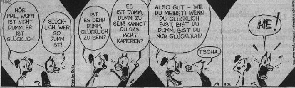 Leider müssen wir von unseren zwei Vierbeinern Abschied nehmen, ein anderes Comic besetzt die Stelle auf der "Anderen Seite" der "NLZ", wo zuvor unsere "härzigen" Tierchen ihre Sachen trieben. Das neue Comic wird von einem sogenannten "Dithard von Rabenau" gezeichnet.
